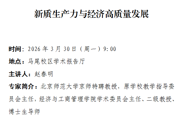 3月30日上午,北京师范大学京师特聘教授、教育部教师队伍建设专家指导委员会委员、中国美国经济学会副会长、全国高校国际贸易学科协作组副秘书长,宝钢优秀教师特等奖获得者赵春明教授应邀莅临beat365官网作专题讲座。校领导吴访益、程灵、林文艺,教务处负责人和国际经贸学院近300名师生参加学习。赵春明以《新质生产力与经济高质量发展》为题,系统阐释新质生产力的核心内涵、目前新质生产力与经济高质量发展面临的机遇与挑战,深入剖析了当前发展过程中面临的核心短板与人才结构性失衡等困境,...
