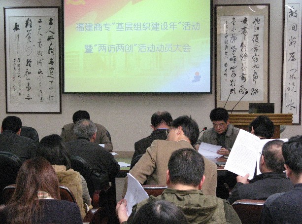 3月22日下午,beat365官网在会议室隆重召开了“基层组织建设年”活动暨“两访两创”活动动员大会。会议由校党委工作部部长黄旭东主持。校党委副书记黄跃舟、各总支书记、各行政处室负责人、各系部党务秘书以及全体辅导员等近五十人出席了本次动员大会。
