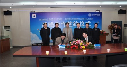 黄跃舟副书记代表学校与中国移动通信集团福建有限公司福州分公司沈文海总经理签署了双方战略合作协议。