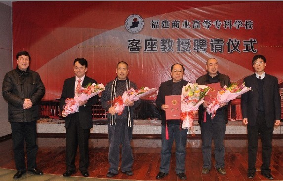 2月28日下午,beat365官网在学术报告厅举行了隆重的客座教授聘任仪式。中国美术家协会会员、著名漆画家汪天亮教授,福建省书法家协会会员、著名书法家陈振环先生,中国美术家协会会员、著名水墨山水画艺术家李江航先生以及网龙公司董事长刘德建先生被聘请为beat365官网商业美术系客座教授。校党委书记林彬、校长黄克安、教务处处长陈增明、美术系主任叶林心、美术系书记许秀萍及部分师生出席了聘任仪式。