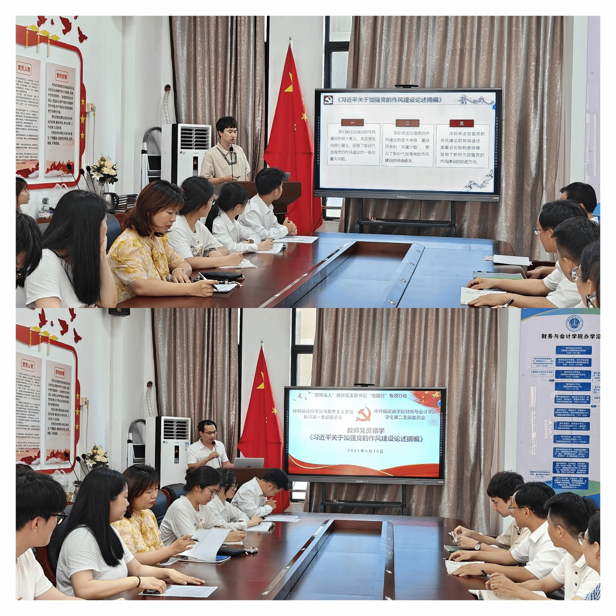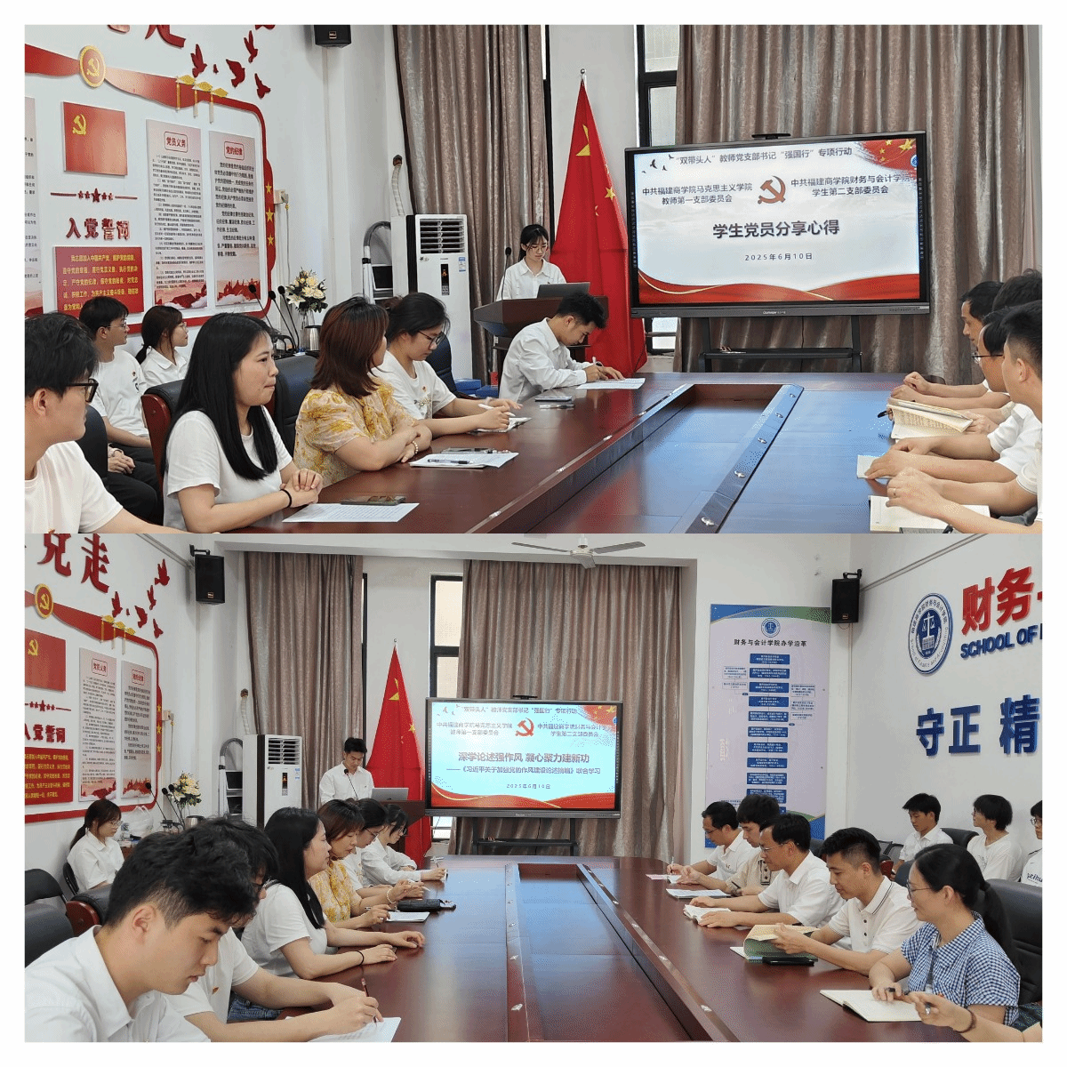 为深入推进“强国行”专项行动走深走实,6月10日,马克思主义学院教师第一党支部联合财务与会计学院学生第二党支部开展“深学论述强作风 凝心聚力建新功”主题学习活动。马克思主义学院、财务与会计学院主要负责同志参加活动。