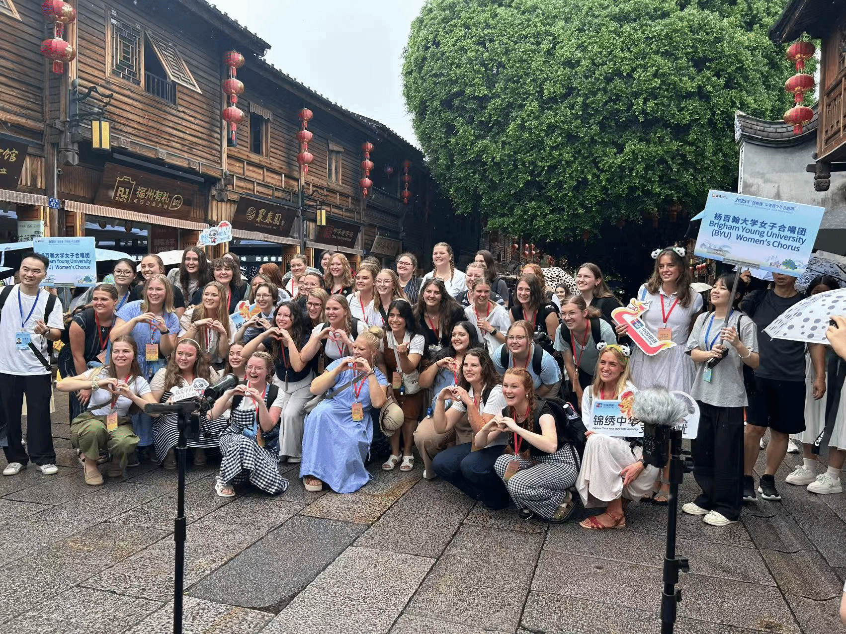 志愿者陪同美方合唱团在三坊七巷完成快闪演出