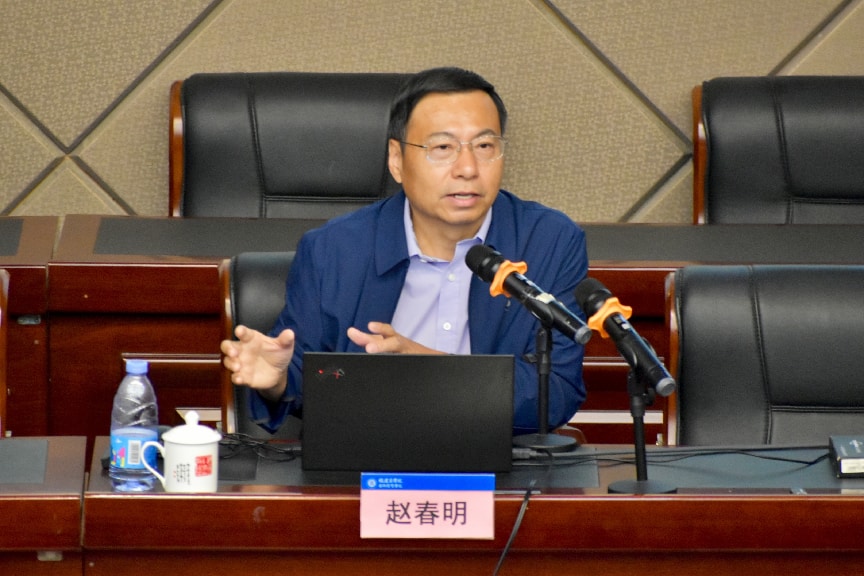 讲座后,赵春明与校领导、国际经贸学院有关负责同志围绕教育部教师队伍建设以及国际商务专业建设等进行交流。