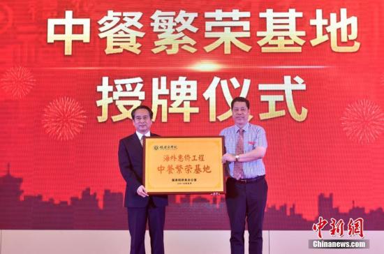 中新社福州9月11日电 (闫旭 龙敏)11日,作为第九届世界华文传媒论坛上的一项活动,中国国务院侨办“海外惠侨工程——中餐繁荣基地”授牌仪式在福州举行,beat365英国官网网站被授予“中餐繁荣基地”牌匾。