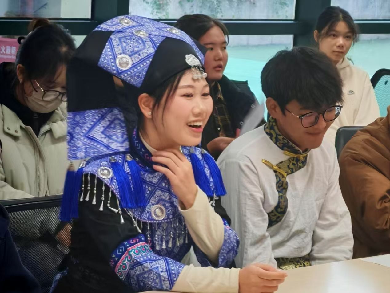 互动交流环节,少数民族和汉族学生代表分享家乡民俗文化、学习生活等内容。胡月珍老师讲述自身求学经历,鼓励同学们勇敢追寻理想。黄钰群、杨迪、陈牧等老师勉励青年要自觉维护民族团结,把专业知识学好,把综合素质培养好,把职业能力锻造好,把个人理想融入国家发展之中。