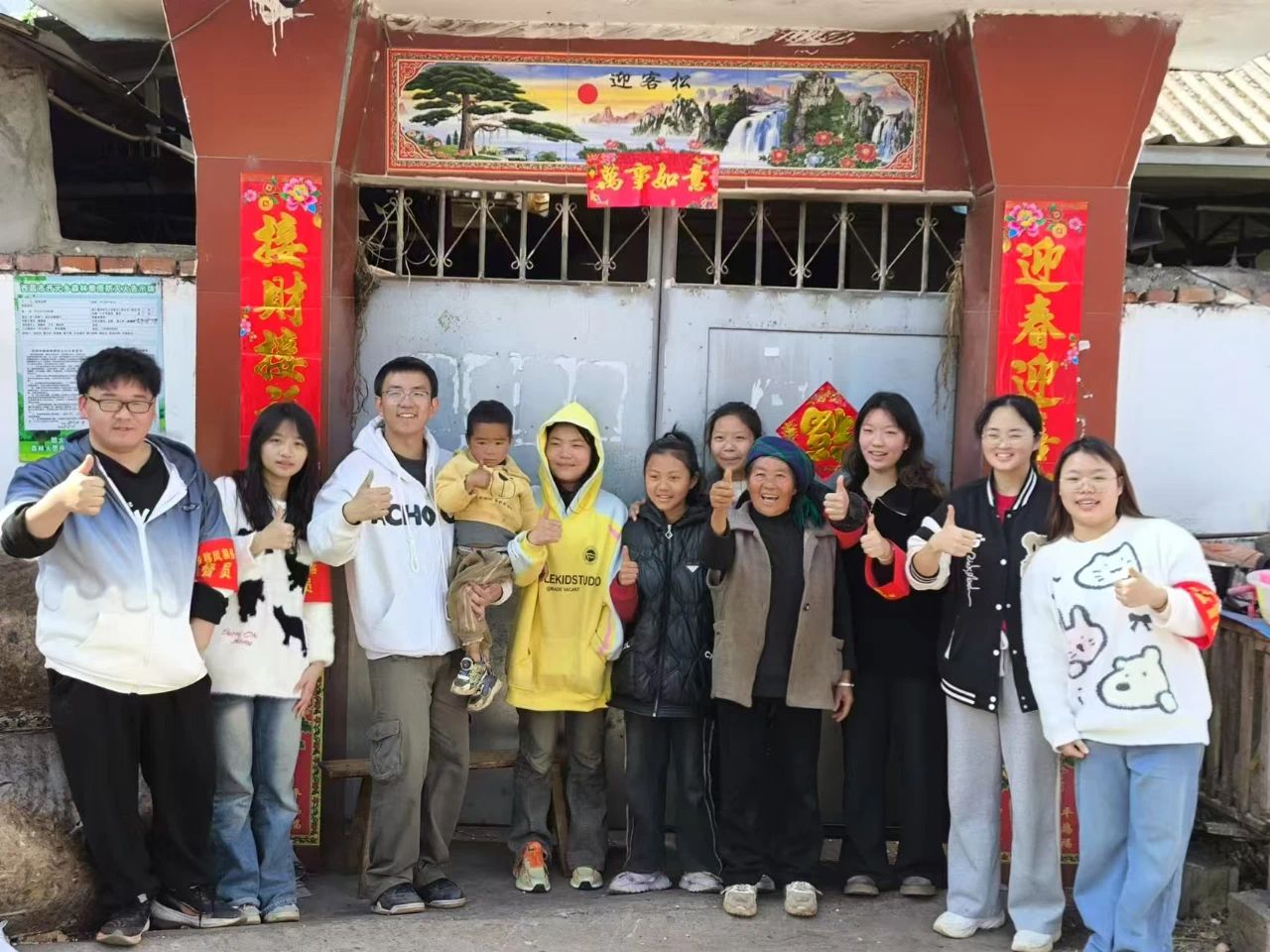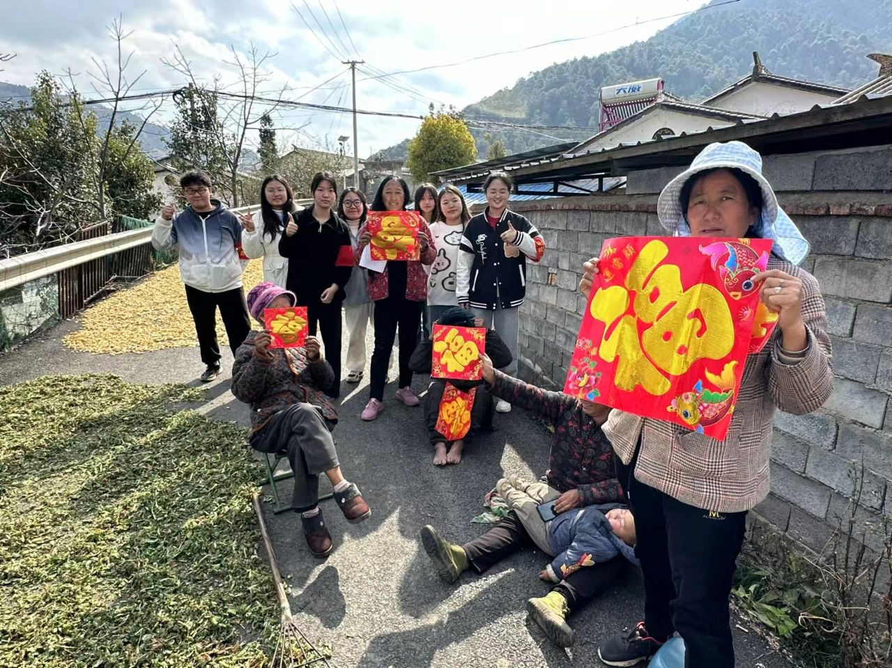 团队追寻领袖足迹走进开元乡,为村民贴春联,交流中传播汉字文化,学习彝族语言和文化,促进了民族团结。