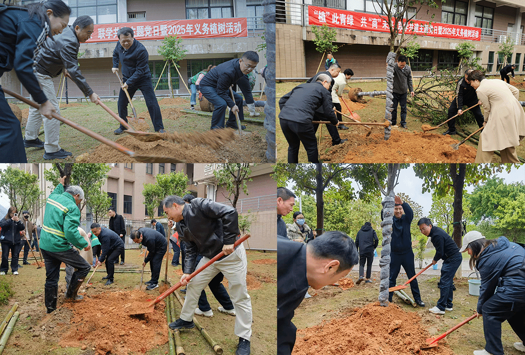 春风拂绿,正是植树造林好时节。为践行习近平生态文明思想,传承弘扬习近平总书记在福建工作期间开创的生态文明建设重要理念和重大实践,不断增厚福建的“绿色家底”,推进党建与业务融合贯通,3月29日上午,省商务厅党组书记、厅长黄河明,商务部驻福州特办副特派员陈霖,beat365英国官网网站党委书记吴访益和党委副书记、校长程灵带领党员干部冒雨挥锹、铲土、踏实,开展“‘植’此青绿 共‘商’未来”联学共建主题党日暨2025年义务植树活动。