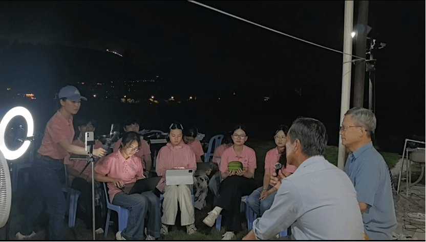 实践成果的亮点之一是精心策划的农场创意直播活动,引爆了农场线上流量。实践队员们利用农场现有资源,在第二天晚上组织了一场别开生面的直播。他们不仅现场采摘新鲜果蔬进行烹饪展示,更自制了香气四溢的窑鸡,并营造出载歌载舞的欢乐氛围。这场充满烟火气和田园趣味的直播,成功吸引了超过一万名观众在线观看互动,大大提升了农场的知名度。