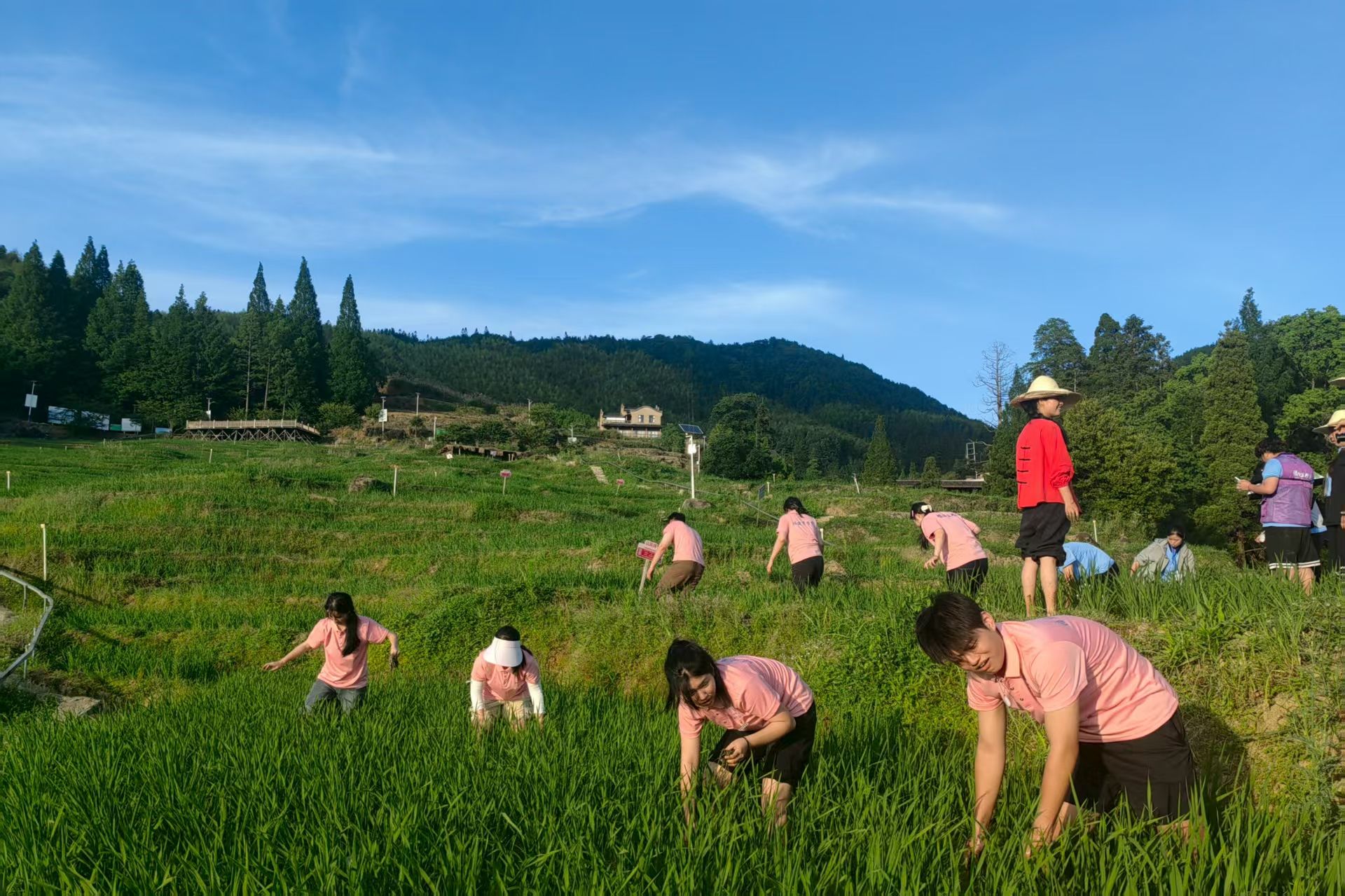 实践队员在“我在屏南有亩田”稻田示范基地劳作
