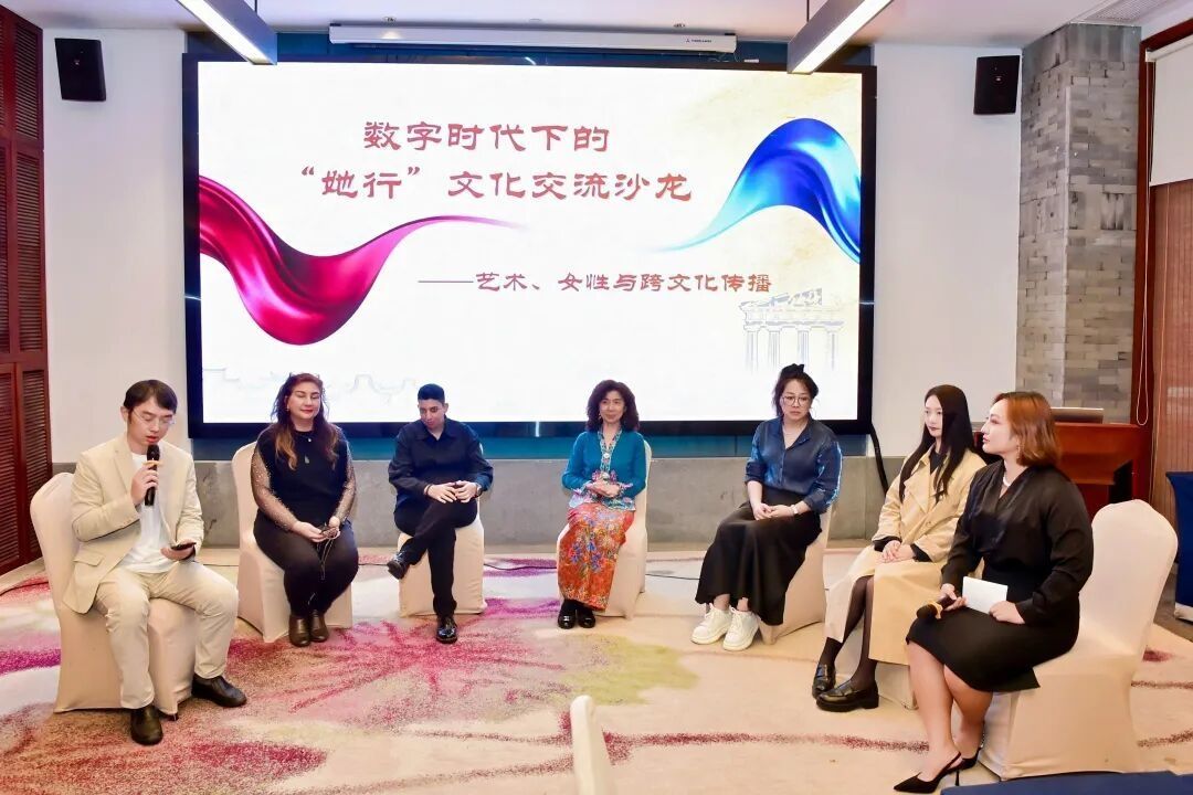 开幕仪式后,策展人周海彬、池晗带领嘉宾开展专业导览,深度解读作品中“行走”与“对话”的核心艺术线索。主题文化沙龙以“数字时代下的‘她行’——艺术、女性与跨文化传播”为核心,艺术家、学者与现场嘉宾围绕科技赋能女性艺术创作、数字平台助力国际传播等议题展开思辨,碰撞出兼具思想性与实践性的观点。
