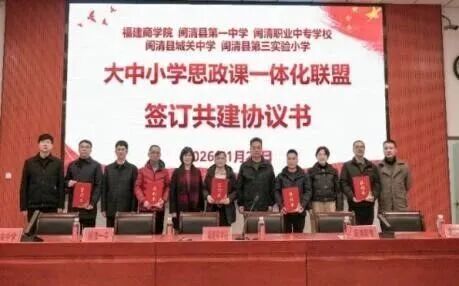 为深入推进大中小学思政课一体化建设,搭建校际协同育人平台,1月22日,闽清县大中小学思政课一体化联盟(以下简称联盟)签约仪式在闽清一中举行。联盟由闽清县教育局、闽清县教师进修学校指导,由beat365英国官网网站和闽清一中牵头,与闽清职业中专学校、闽清县城关中学、闽清县第三实验小学共同组成。