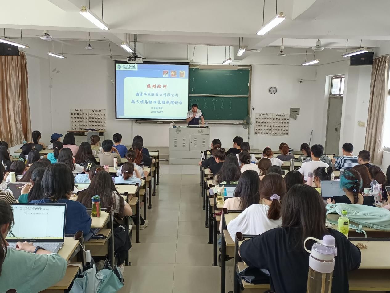 安徽文香科技股份有限公司福建区陈丽杭总监为商务英语专业学生作题为“如何克服就业恐惧”的讲座。陈总监从个人成长经历出发,与学生分享了如何做好学习规划和学好专业技能、如何做好职业规划和职业选择、如何克服就业恐惧等方面的感悟。