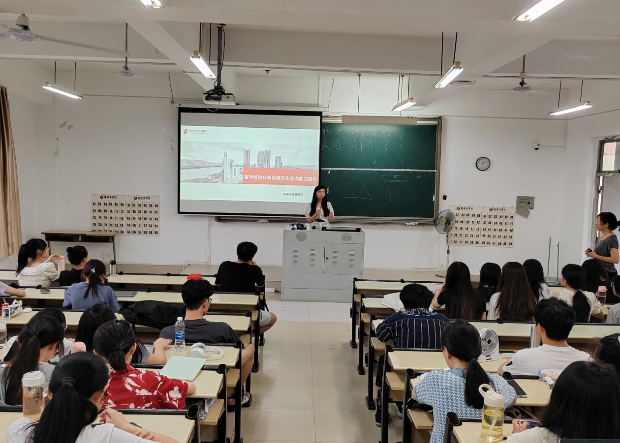 福州译国译民翻译集团洪梫棽经理为商务英语专业学生作题为“如何克服就业恐惧”的讲座。洪经理根据个人留学经验讲解了如何申请留学、留学前要注意的事项,如何提升跨文化交际能力,以及在跨文化交际中需要注意的问题等。
