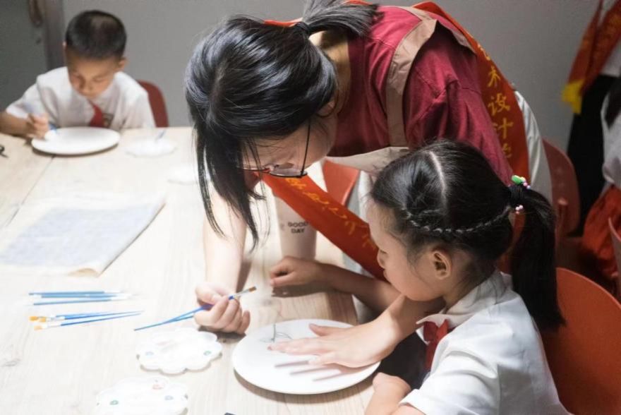 党支部志愿者指导小学生釉下彩绘