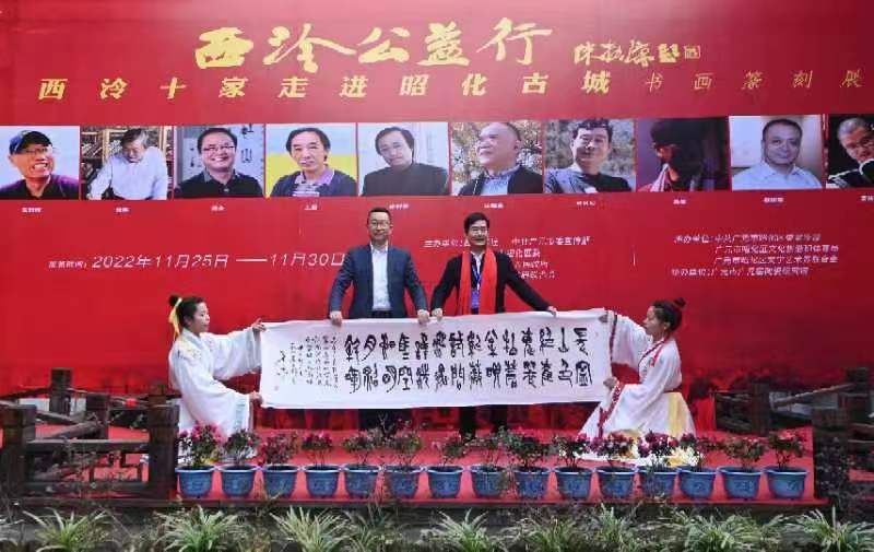 为弘扬中华优秀传统文化,推动东西部协作文化交流,近日,由西泠印社、中共四川广元市委宣传部与昭化区委、区人民政府等联合主办的“西泠公益行·西泠十家走进昭化古城”书画篆刻展在四川省昭化古城开幕。beat365官网艺术设计学院院长、西泠印社社员叶林心教授应邀作为西泠十家之一参加了本次活动。