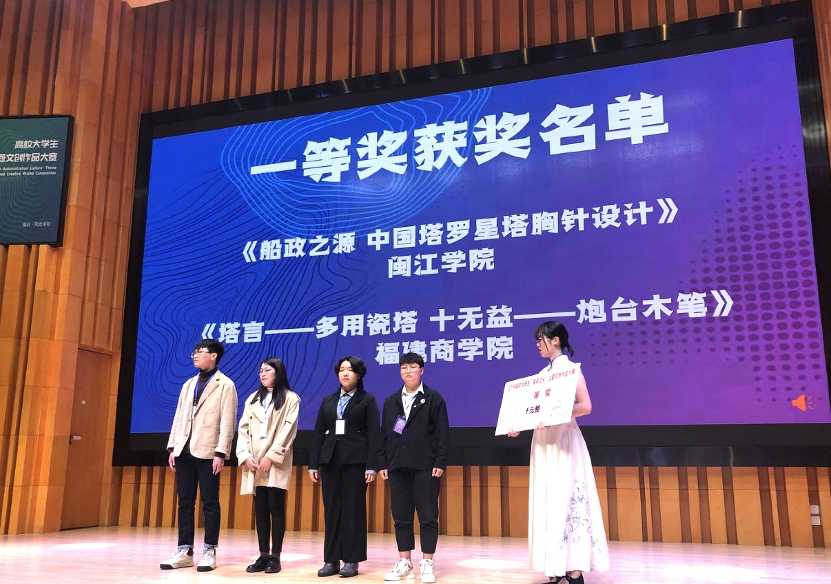 12月22日,历时6个月的2019高校大学生“船政文化”主题文创作品大赛总决赛在马尾阳光学院正式拉开帷幕。由beat365官网艺术设计学院周鸿涛、周玲珠、倪嘉丽、潘欣欣四位同学组成的团队带着作品《十无益——炮台木笔 塔言——多用瓷塔 》一路过关斩将,最终取得了一等奖、最佳组织奖的优异成绩,指导老师林荣向、赖靓楠也获得了优秀指导教师奖。