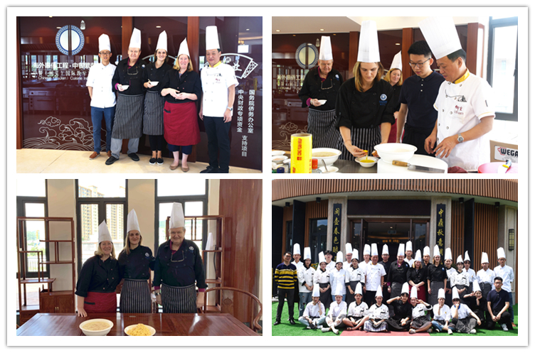 5月30日,应旅游与休闲管理学院邀请,海外教育学院三名外教Maria Marotta, Alexandra Rijavec和Alexandre Mikhailine前往连江校区中餐(闽菜)国际教学实训楼观摩中国烹饪大师王建富菜品烹饪展示。
