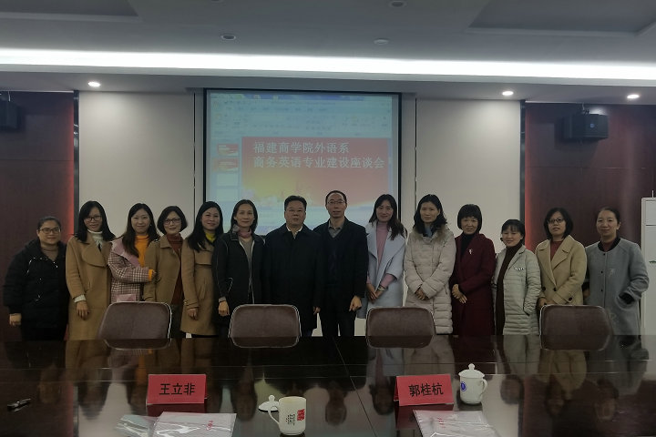 1月4日下午,外语系在鼓楼校区举行商务英语专业建设座谈会,教育部高等学校英语专业教学指导委员会委员、教育部商务英语国家级教学团队负责人、对外经济贸易大学博士生导师王立非教授,中国国际贸易学会国际商务英语研究委员会常务副理事长、广东外语外贸大学国际商务英语学院院长郭桂杭教授应邀出席。座谈会由外语系主任池玫教授主持,商务英语教研室教师参加会议。