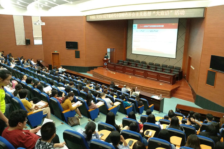 为有效推进习近平新时代中国特色社会主义思想的学习、宣传、教育,进一步兴起“大学习”热潮,10月23日下午,外语系、人文与公共管理系邀请学校党委讲师团成员、马克思主义学院陈火荣副教授在马尾校区学术报告厅为师生作了题为“积极推动全面从严治党向纵深发展”的主题宣讲。外语系、人文与公共管理系全体教职工、学生党员、入党积极分子等近300人参加了宣讲报告会。