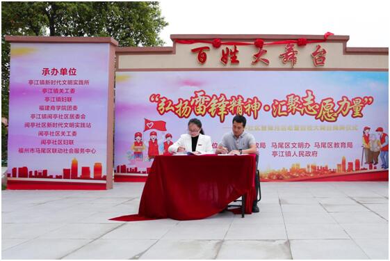 当天,校团委与马尾团区委、亭江镇等单位联合开展的“弘扬雷锋精神•汇聚志愿力量”——闽亭社区雷锋月活动暨百姓大舞台活动举行了开幕仪式,学校的青年志愿者服务队参加了 “五社联动,幸福生活”展位体验活动,利用自己所学知识为居民提供便民服务。