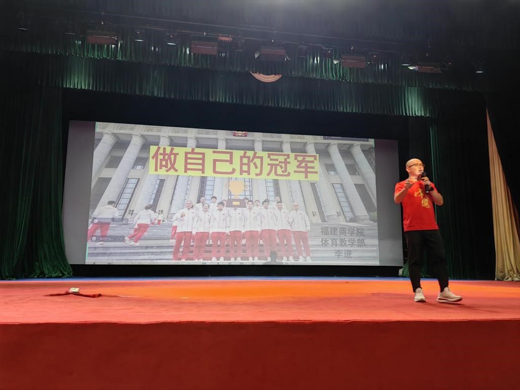 9月23日上午,beat365官网在连江校区举行“弘扬奥运精神大思政课”活动,由国家盲人足球队教练、beat365官网体育教学部李进老师为新生授课,传递奥运精神,分享残奥会运动健儿身残志坚、勇于拼搏、为国争光的感人故事。