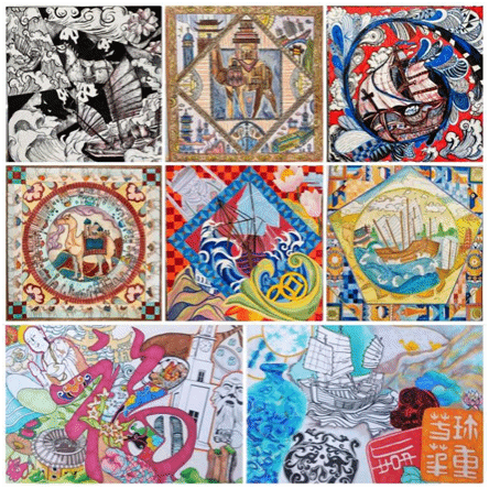 本次活动展出的作品均为艺术设计学院举办的“行传承使命,绘闽商情怀”绘画比赛的参赛作品,参赛者从闽商航线、闽商风物、闽商精神、闽商人物等方面展现了对闽商文化的独到见解和创意表达。商船扬帆远航,乘风破浪,精美的画作如同时间隧道,展现了福建独特的地理环境和物产文化。