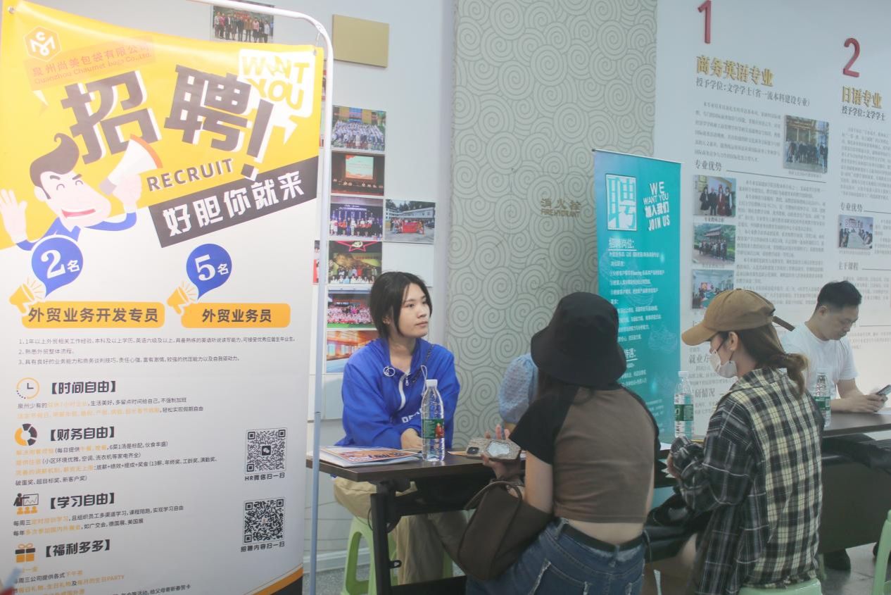 在此次招聘会上,两个学院根据专业特色,认真筛选15家企业,提供了贸易、电商、教师、管理等120个精准匹配岗位。同学们表示,感谢学校为大家提供一个与多家专业对口企业深入面对面交流的机会,对个人的就业选择很有帮助。