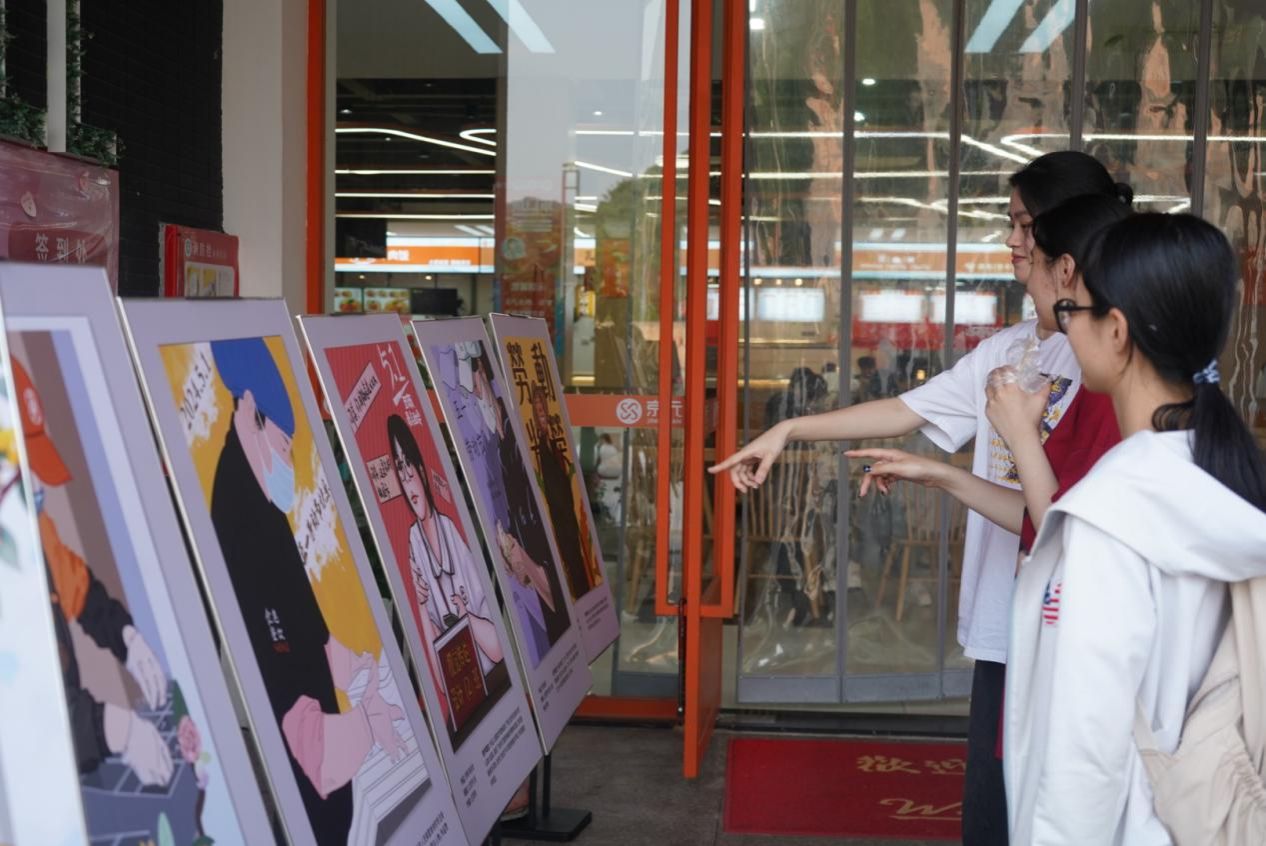 此次活动展出的14幅作品以校园里的普通劳动者、身边可爱可敬的劳动者为切入点,围绕不同的劳动场景进行创作,展示各行各业的劳动者在平凡的岗位上兢兢业业、努力工作的形象。这些作品或细腻描绘劳动者辛勤劳动的身影,或生动展现劳动者的喜悦与自豪,或深刻表达劳动的意义与价值,吸引了众多师生观看、讨论,获得师生好评。