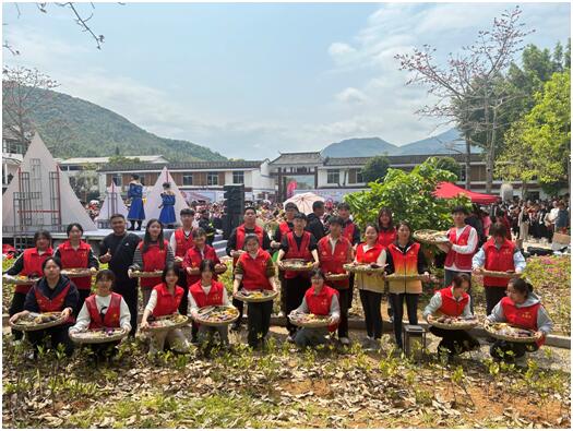 beat365官网青年志愿者身着统一服装,精神饱满地投入到各项工作中。他们有的负责接待游客,为游客提供详细的活动介绍和路线指引;有的负责维护现场秩序,确保活动的顺利进行;有的积极参与到文化展示和互动环节中,织竹编、打糍粑、酿酒、磨豆腐,与游客共同体验畲族文化的独特魅力。演出现场,志愿者还端出了一道道色香味俱佳的“簸箕小吃”,这些小吃以其独特的制作工艺和风味,成为文化节的一大亮点。