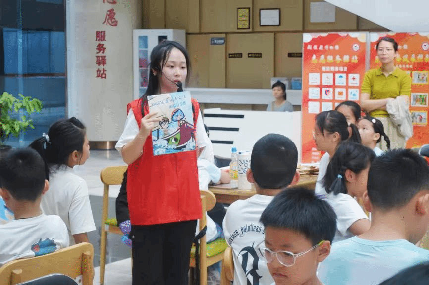 艺术设计学院的学生为孩子们讲解任务卡知识点