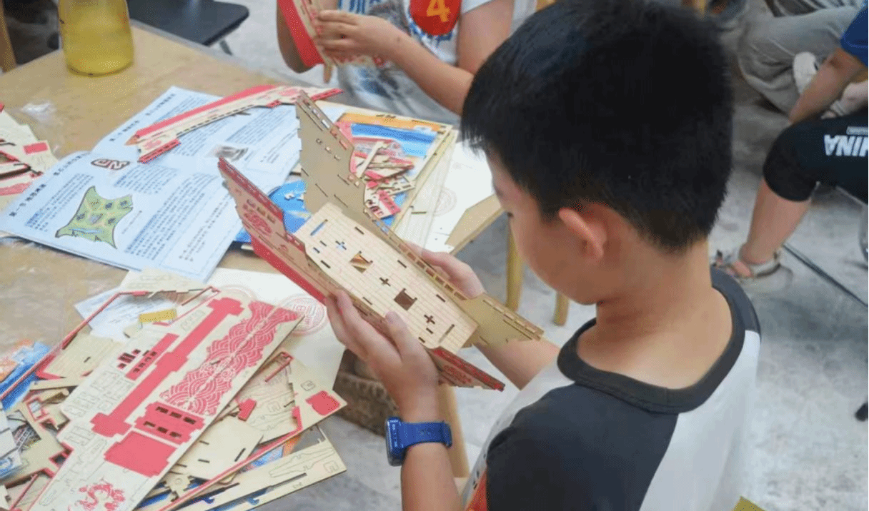 孩子们拼接福船模型
