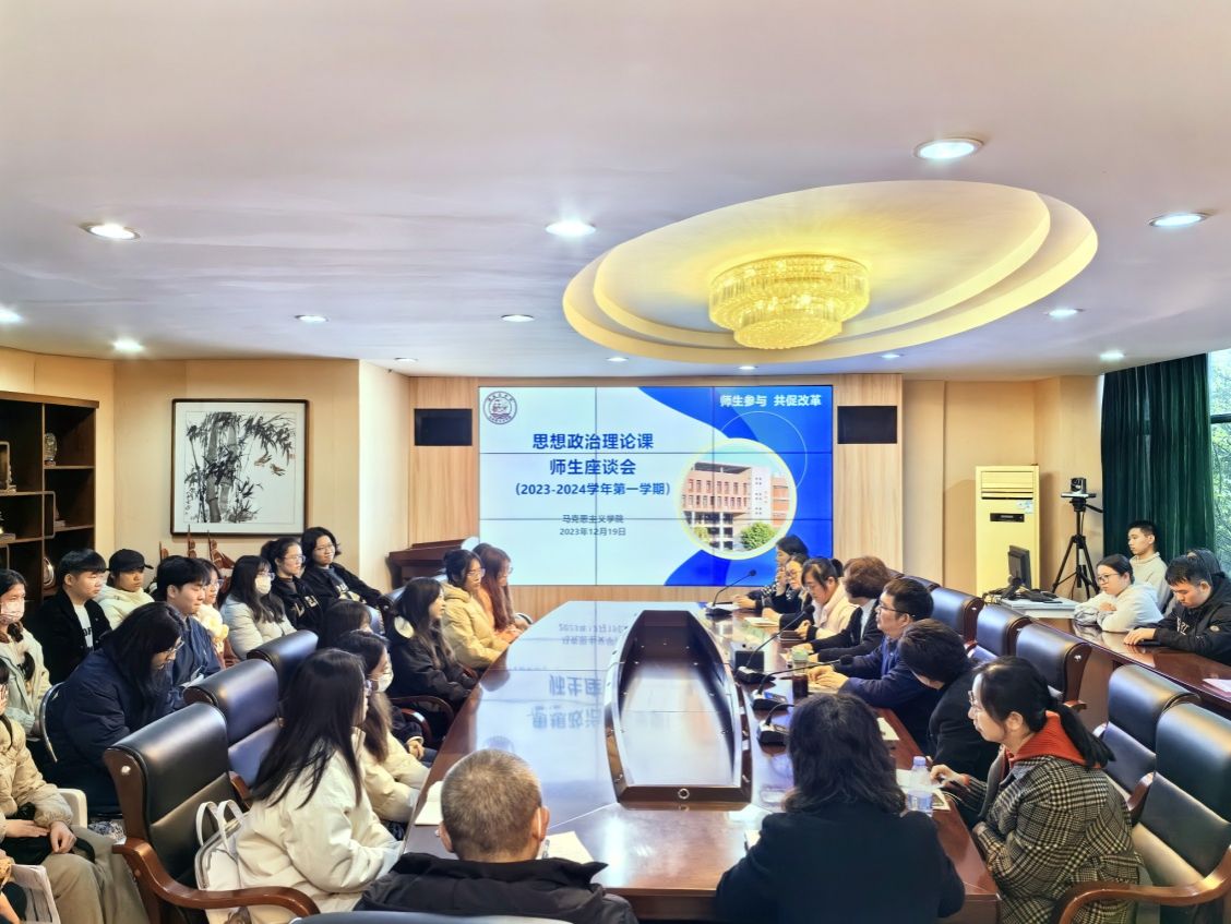 为更好促进思政课的教学和改革,提升学生在思政课中的获得感和对思政课的认同,12月19日下午,beat365官网在马尾校区召开2023-2024第一学期思想政治理论课师生座谈会。校教务处、质量监控与评估处有关人员,马克思主义学院教师代表和马尾校区学生代表共40人参加了会议。