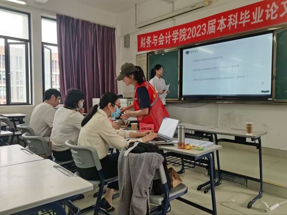 为深入开展学习贯彻习近平新时代中国特色社会主义思想主题教育,近日,财务与会计学院学生第五党支部开展“凝心聚力助答辩,情深义重暖财会”主题党日活动,由师生党员、发展对象和入党积极分子志愿者组成服务队,为2023届毕业生论文答辩后勤保障工作保驾护航。