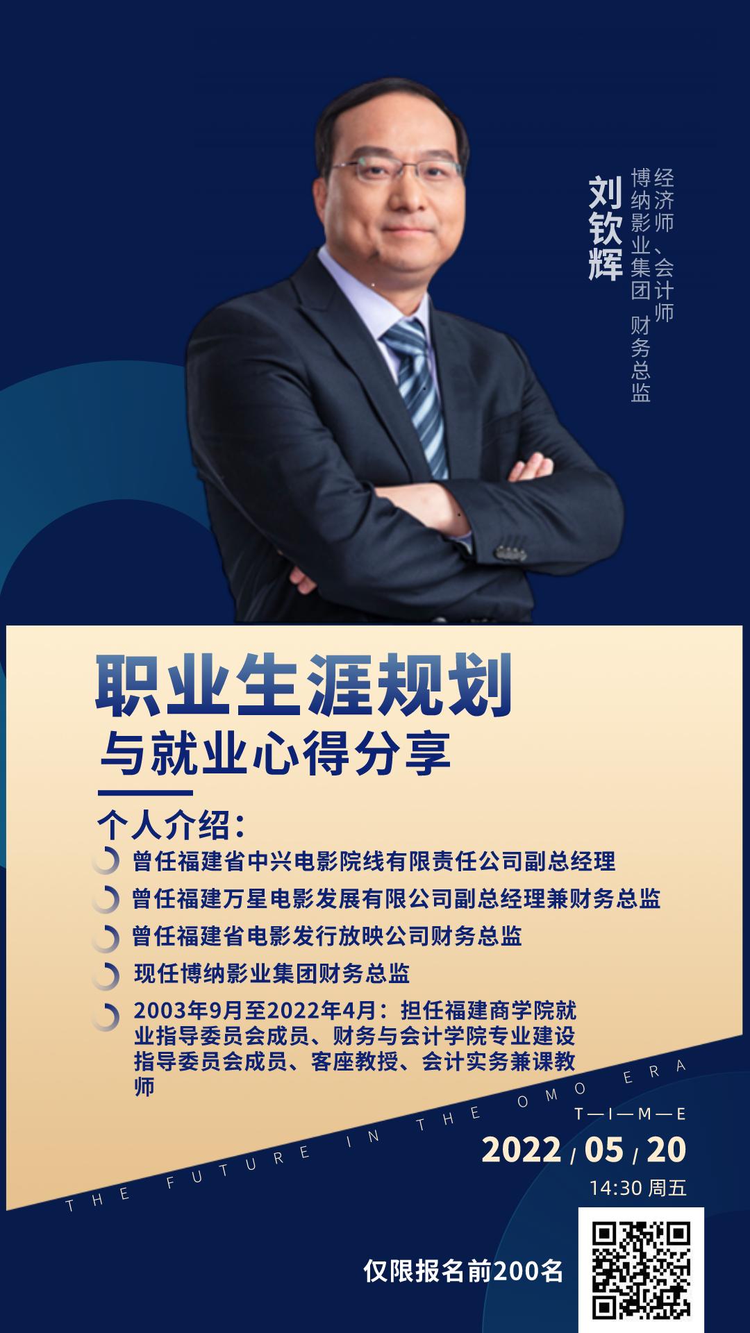 近日,为帮助学生在走上社会工作岗位前更好地认知岗位实操、职场环境等,财务与会计学院邀请博纳影视集团财务总监、财务与会计学院客座教授、校友刘钦辉老师为学生开展“职业生涯规划与就业心得分享”线上讲座。财会学院全体专任教师、各年级学生和广大校友线上同步听讲。