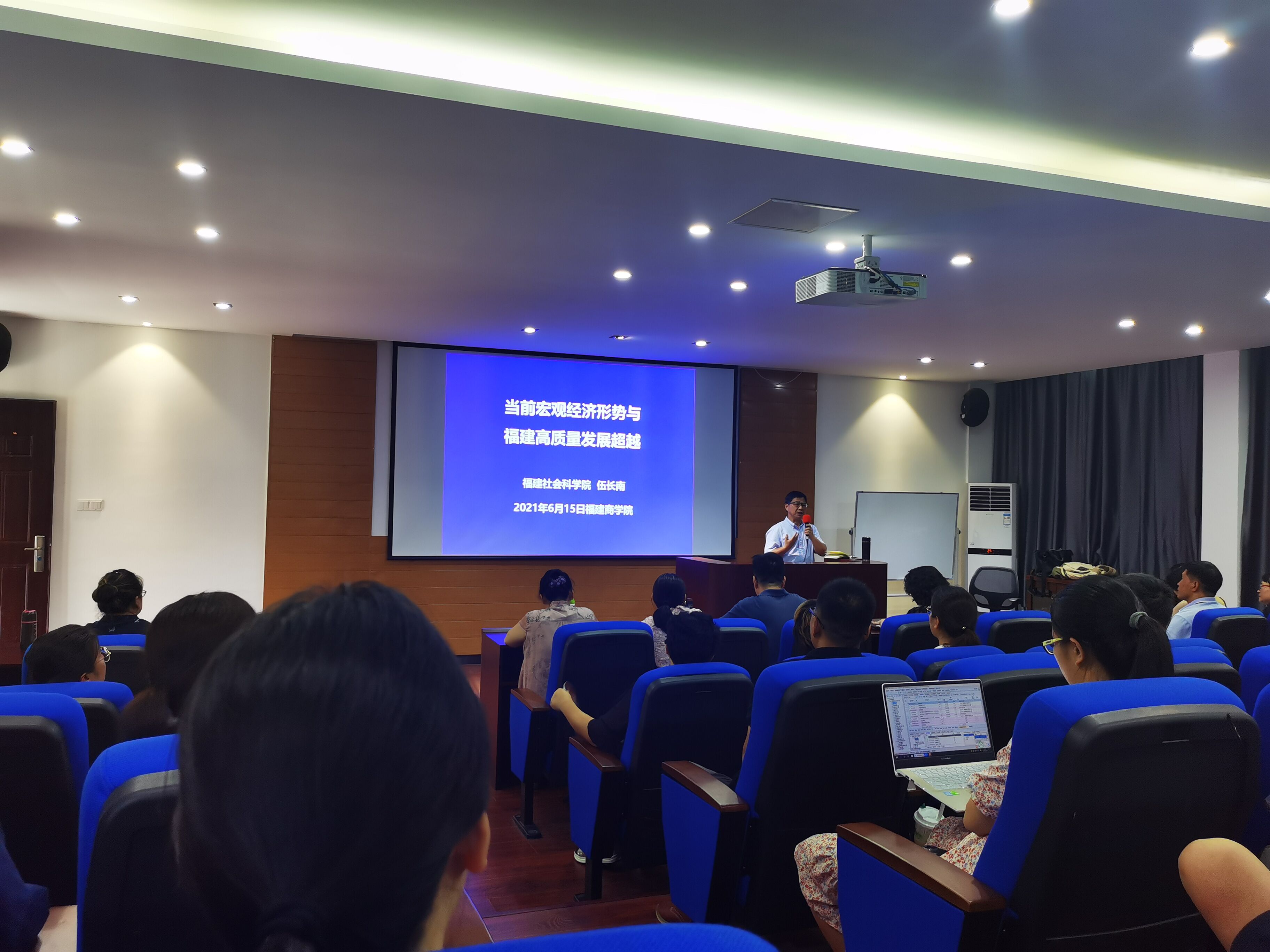 6月15日下午,福建社会科学院经济研究所伍长南研究员应邀到校作“当前宏观经济形势与福建‘十四五’高质量发展超越”专题讲座。