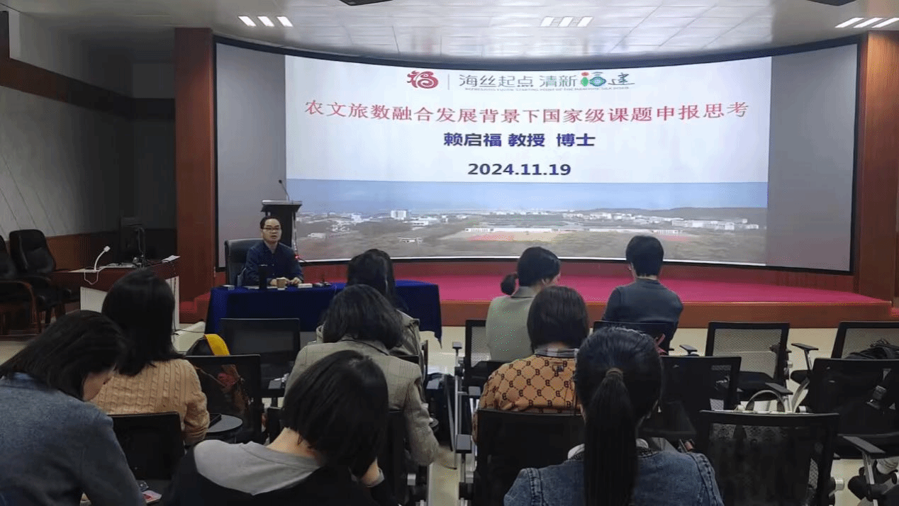 11月19日下午,福建农林大学教授、硕士生导师赖启福博士应邀为beat365官网旅游与休闲管理学院老师作《农文旅数融合背景下国家级课题申报思考》专题讲座。