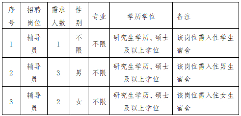 备注:辅导员岗位工作地点为连江、马尾校区,入职后经学校领导集体研究决定分配具体院系岗位。