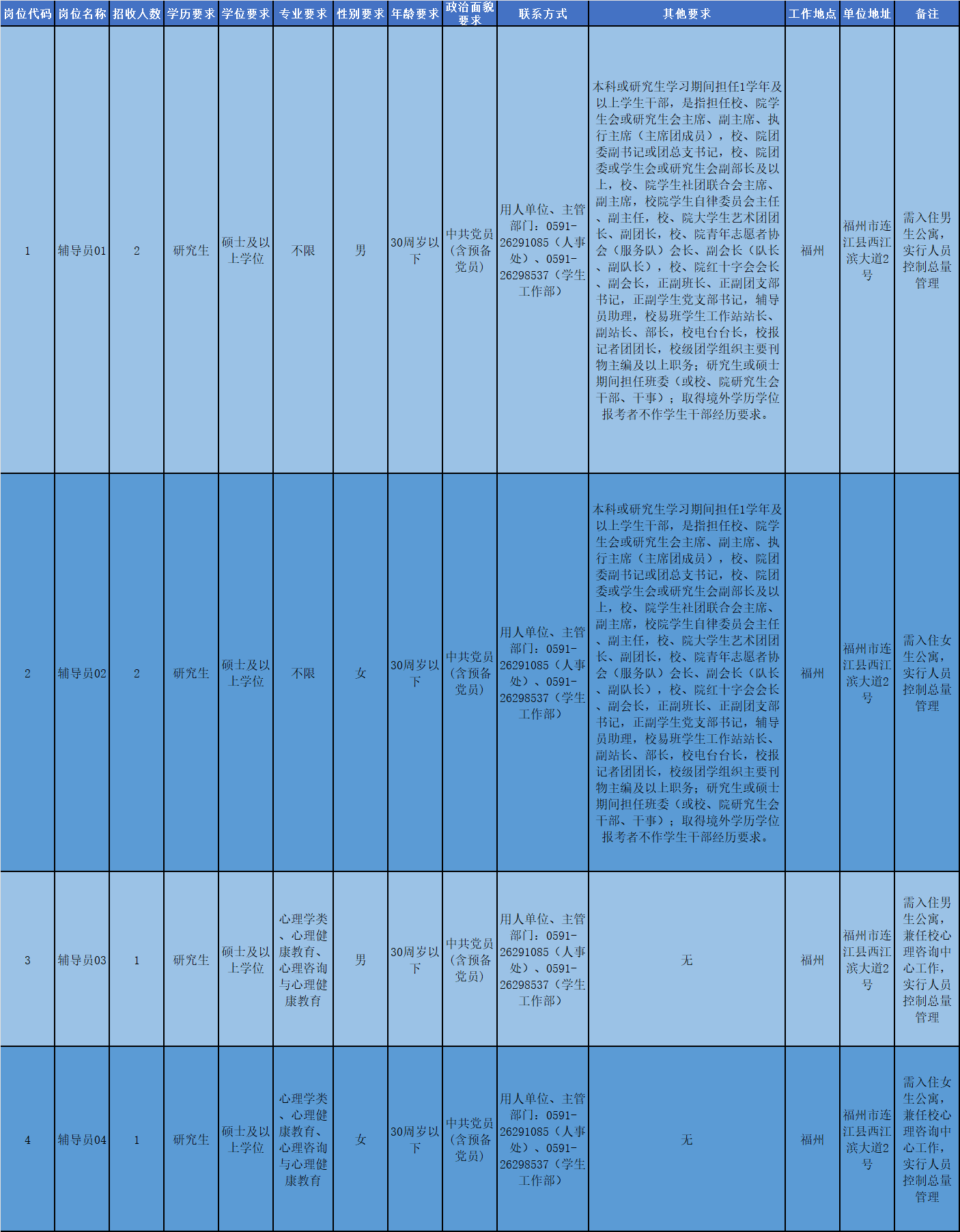 2.涉及具体岗位相关情况咨询,请与beat365官网联系:0591-26291085(人事处)、0591-26298537(学生工作部)。