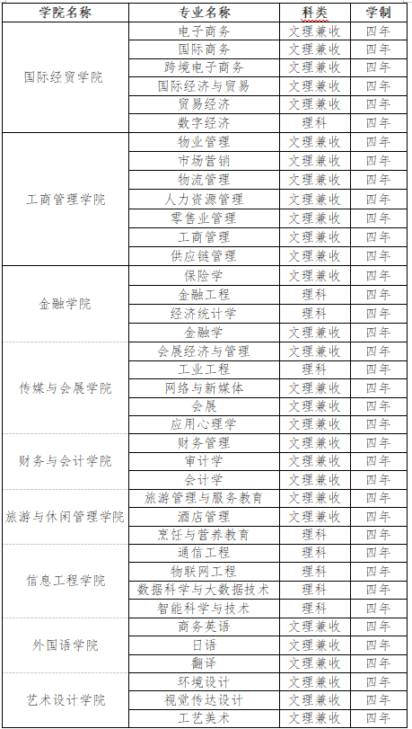 招生专业(列表如下):