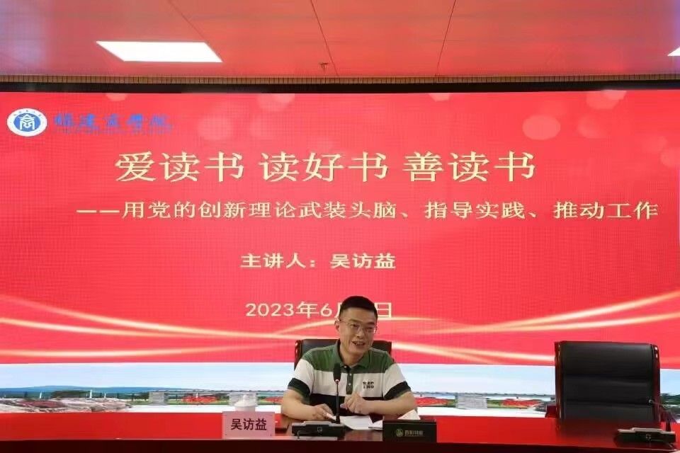 根据学校学习贯彻习近平新时代中国特色社会主义思想主题教育统一部署,结合学校辅导员主题教育读书班暨2023年第一期业务培训班安排,6月1日上午,校党委书记吴访益为辅导员讲授题为“爱读书 读好书 善读书——用党的创新理论武装头脑、指导实践、推动工作”的专题党课。省委主题教育第14巡回指导组成员吕奕森处长到会指导。党课由副校长蒲文庆主持,各二级学院党委副书记和团委负责人、全体辅导员及学生工作部全体人员现场聆听。