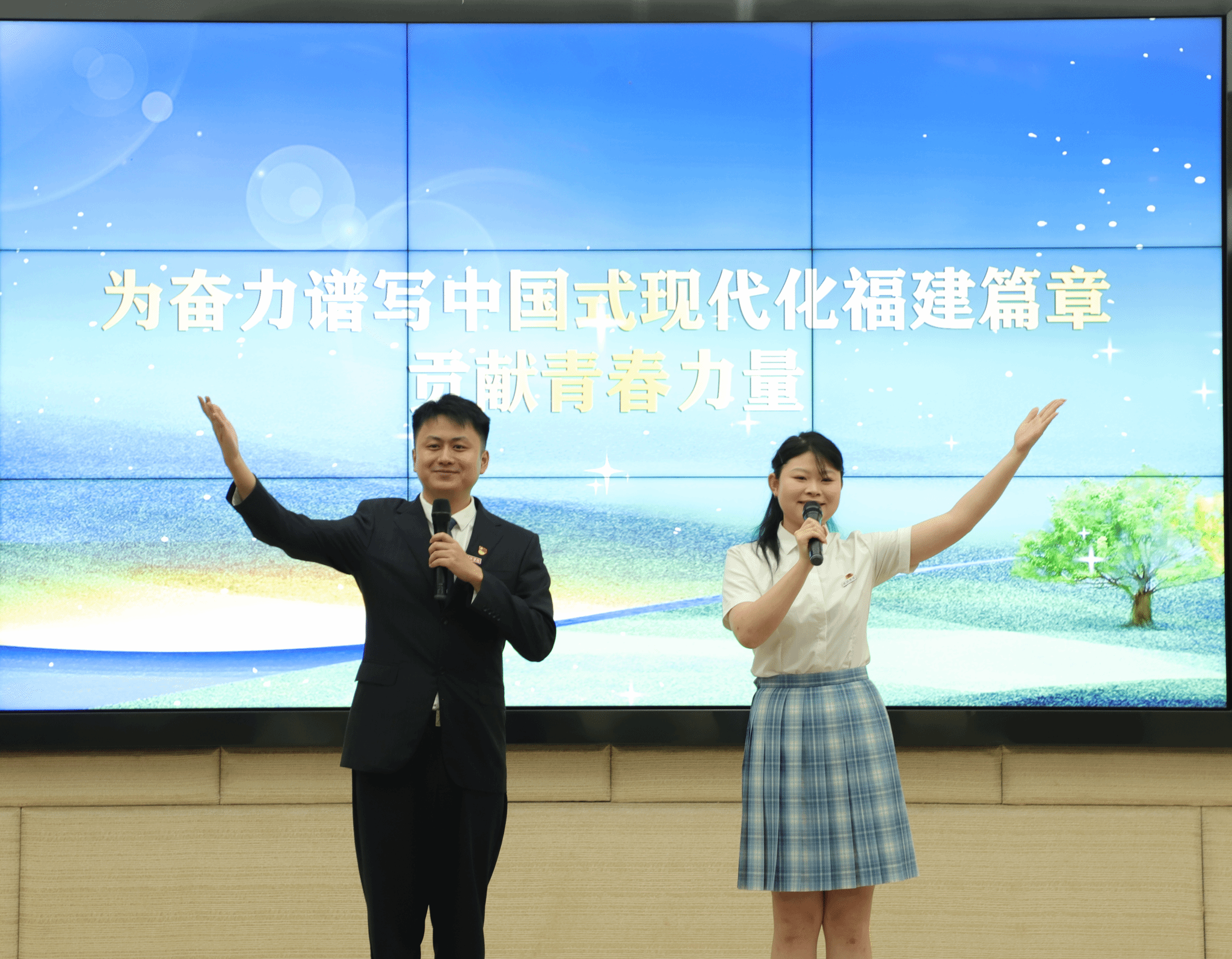 闽江学院师生蒋翔宇、王欣瑞作《立德树人 薪火相传》宣讲