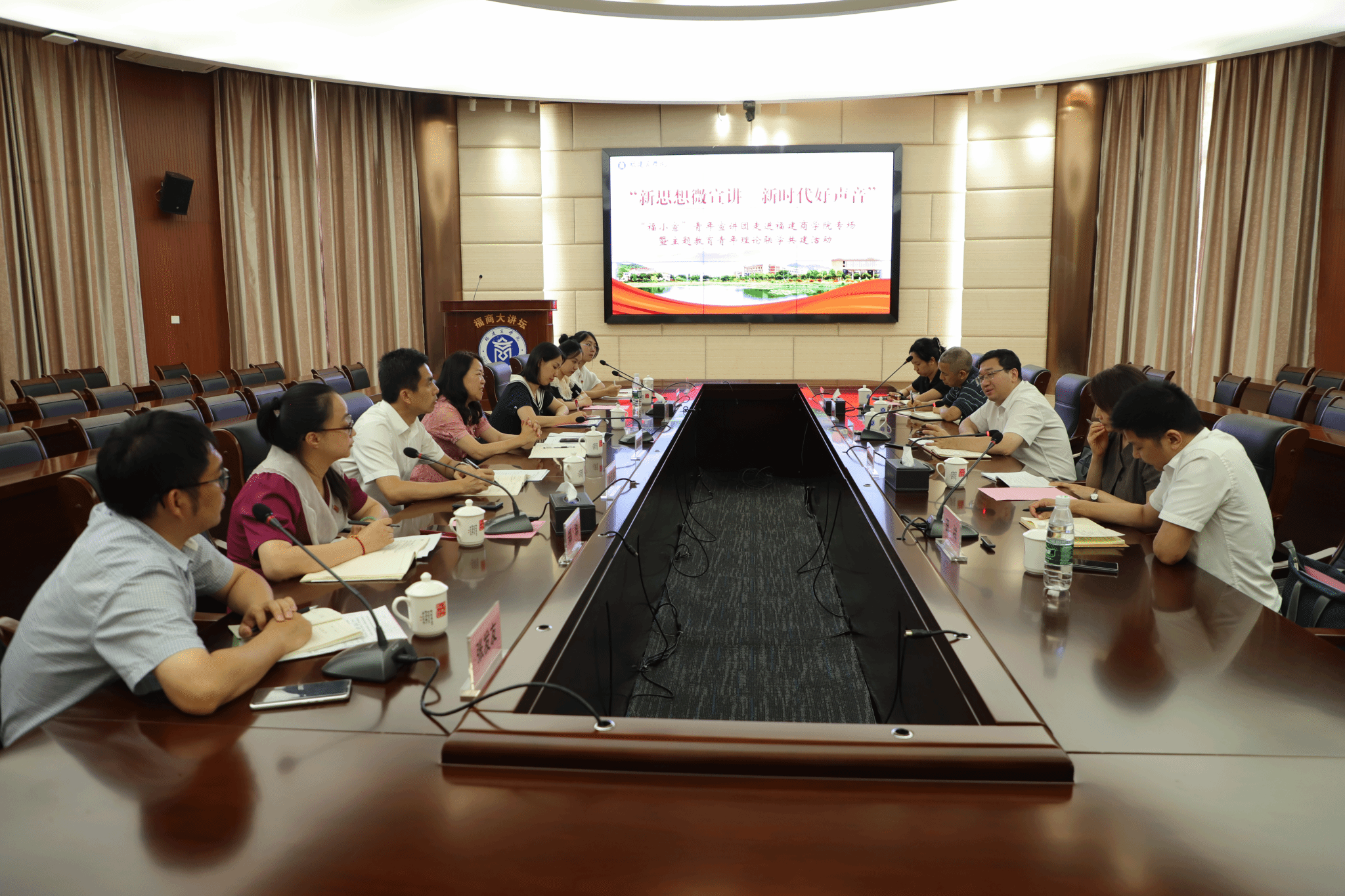 6月29日,由省委讲师团、beat365英国官网网站共同组织的“新思想微宣讲 新时代好声音”青年理论联学共建活动,在beat365英国官网网站连江校区举行。省委宣传部副部长、省委讲师团团长谢勤亮,省委讲师团副团长卢莉莉,校党委书记吴访益、党委副书记徐晓丹、副校长蒲文庆,省委讲师团有关同志、学校有关部门负责人和青年师生代表近百人,共同倾听微宣讲,学习新思想。