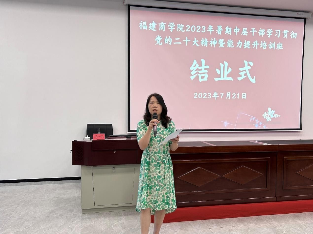结业式上,校党委书记吴访益为学员颁发结业证书。校党委副书记徐晓丹作总结讲话。徐晓丹指出,本次培训针对性强、信息量大、质量较高,希望全体学员将所学消化吸收,学思践悟、学以致用,转化为指导具体工作的有效方法;要内化于心,外化于行,练就过硬本领、真抓实干,不断学习不断成长,努力成为一名忠诚干净担当的新时代好干部,为学校事业高质量发展添砖加瓦、增光添彩。