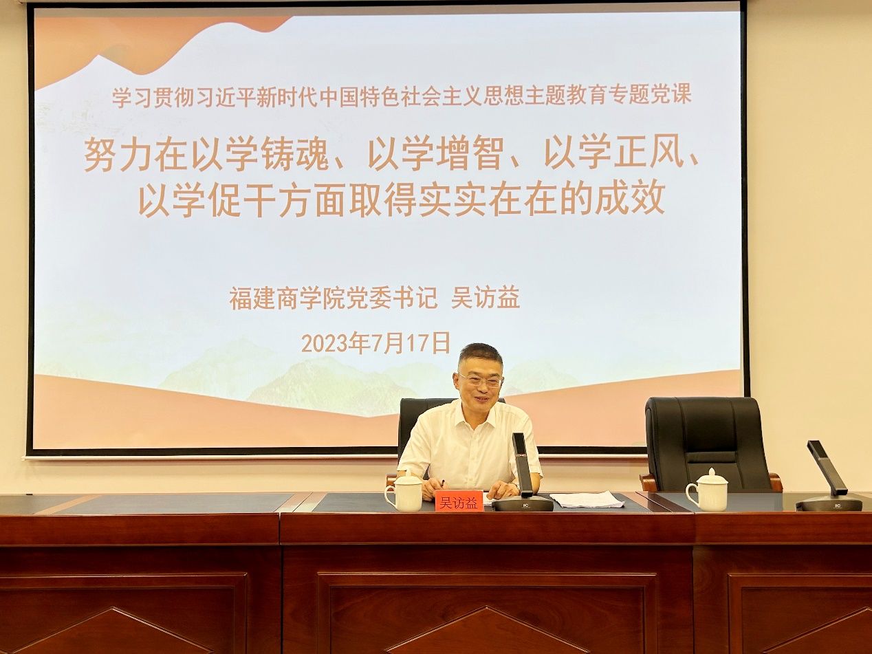吴访益以《强化理论武装,努力在以学铸魂、以学增智、以学正风、以学促干方面取得实实在在的成效》为题讲授培训班“第一课”。吴访益强调,要在以学铸魂上下功夫,坚持用习近平新时代中国特色社会主义思想凝心铸魂,及时跟进学习习近平总书记最新重要讲话和重要指示批示精神,利用好教职工读书社和研习小组,深化开展“无书香不福商”读书研习活动;要在以学增智上下功夫,从习近平新时代中国特色社会主义思想中汲取干事创业的智慧和才干,不断提升政治能力、思维能力、实践能力,认清beat365官网所处的形势,回答好“教育强国、教育强省、福商何为”;要在以学正风上下功夫,继续坚持艰苦奋斗团结奋斗,勤俭办学,改进无形资源浪费问题;要在以学促干上下功夫, 落实立德树人根本任务,深学争优、敢为争先、实干争效,把主题教育激发出来的信心力量转化为感恩奋进团结奋斗的强大动力。