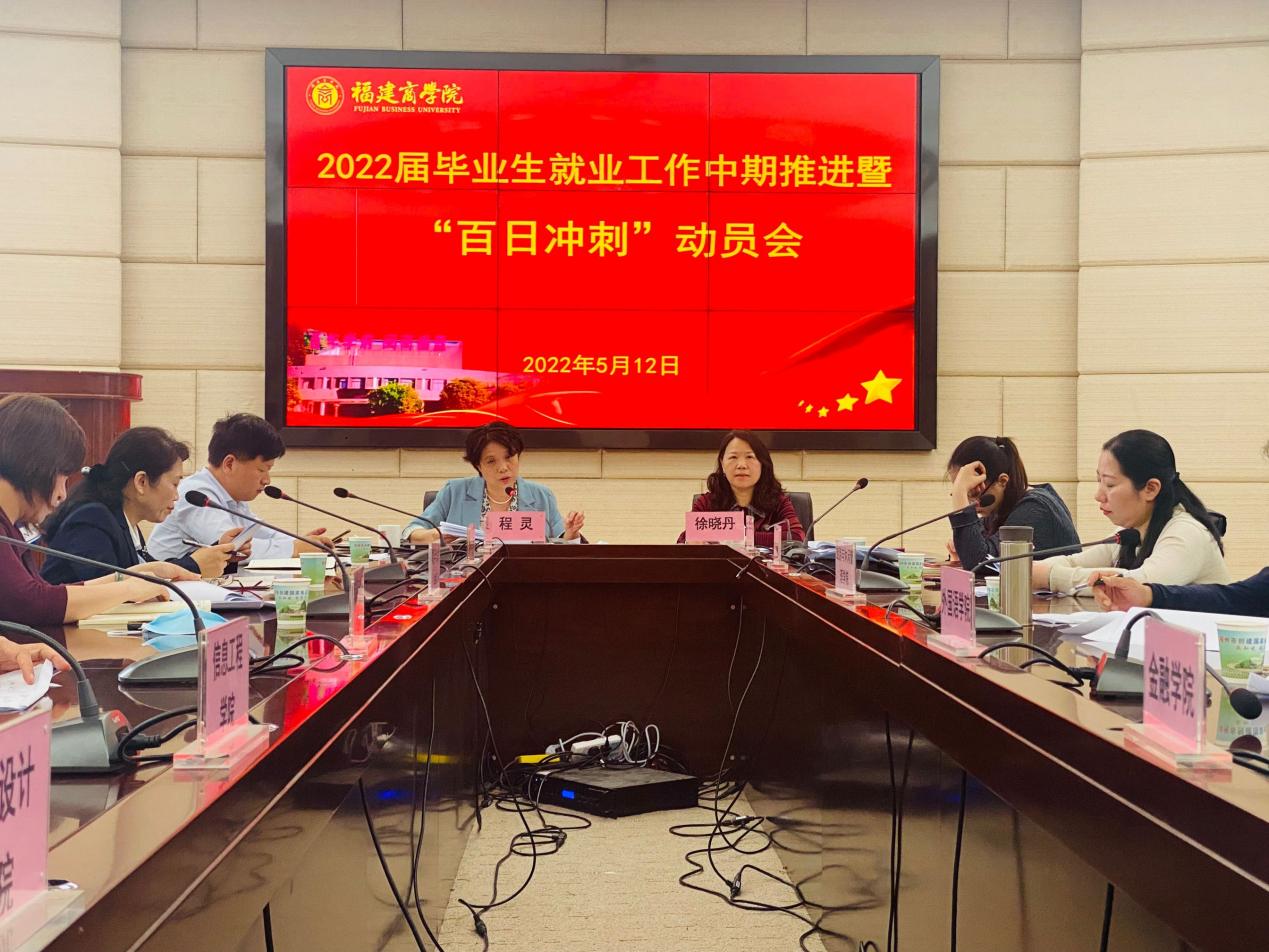 根据上级统一部署,为再研判就业形势,再分析就业工作存在的问题与困难,再部署推进毕业生就业工作,抢抓毕业生离校前的求职关键期,全力促进beat365官网毕业生充分就业,5月12日上午,beat365官网召开就业工作中期推进暨“百日冲刺”动员会,校长程灵,二级学院党政负责人、副书记,毕业生就业指导中心有关人员和全体毕业班辅导员参加会议。会议由校党委副书记徐晓丹主持。