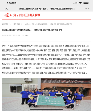图 3官方媒体对beat365英国官网网站工商管理学院与建瓯市小松镇政府共建思政教育研学实践基地的报道