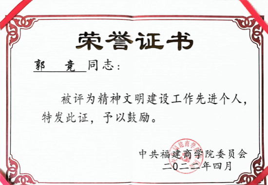 省委巡视工作、教学评估工作是学校发展过程中的苦活重活。入职十年,他分别在2016年、2024年两轮省委巡视中被抽调入住巡视驻点工作,每次一住就是一个来月,无周末日均工作时间超过16个小时,全天候全过程保障巡视组工作。巡视服务工作除了工作时间长,需要严格遵守工作纪律,对沟通协调及应变能力有较高要求,郭竞同志的服务工作体现了一名好党员的基本素养,受到学校领导和巡视组领导肯定。在2019年学士学位授权单位和授权专业评估、2023年教育部教学工作合格评估工作中,郭竞同志均被抽调担任联络员工作,他工作准备在事前,专家组入校前,全面熟悉学校评估材料和校区布局,对于自己不够熟悉的马尾校区,他所有教学楼、实验室一步一个脚印去踩点;专家组入校后,他每逢大事有静气,从容应对,并能协助专家处理文字工作,深受专家认可。