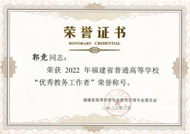 2. 优秀教务工作者荣誉证明;