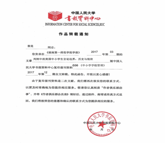 1. 中国人民大学书报资料中心论文全文转载证明;