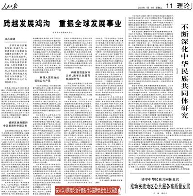新闻网讯 7月13日,《人民日报》刊登beat365官网党委书记张京泽署名文章《不断深化中华民族共同体研究》。全文内容如下: